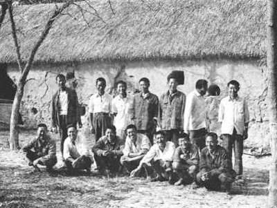 一九八一年,部分“大包干”帶頭人在茅草屋農舍前合影(資料照片)。新華社發
