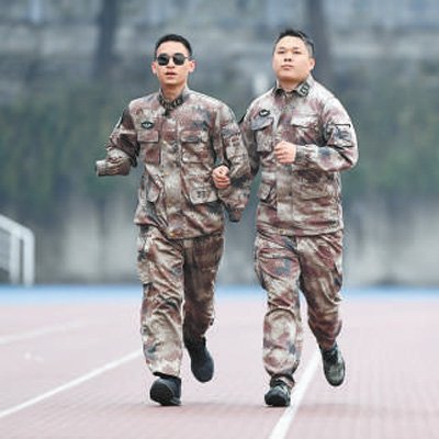 2020年1月2日,“排雷英雄戰士”杜富國(左)和戰友在陸軍軍醫大學操場上跑步。新華社記者 王全超 攝