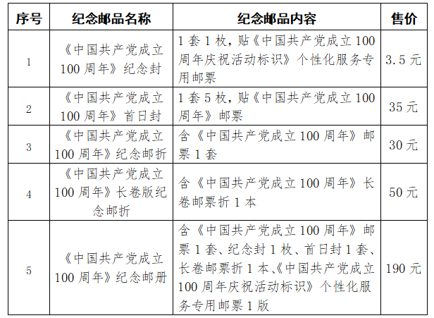 附表:《中國共產黨成立100周年》紀念郵品銷售方式