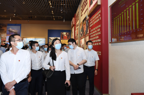 百年征程波瀾壯闊,百年初心歷久彌堅。黨史館猶如一部立體黨史教科書,全體參觀人員尋著中國共產(chǎn)黨百年歷史發(fā)展脈絡(luò),仔細參觀了“建立中國共產(chǎn)黨 奪取新民主主義革命偉大勝利”“成立中華人民共和國 進行社會主義革命和建設(shè)”“實行改革開放 開創(chuàng)和發(fā)展中國特色社會主義”“推進中國特色社會主義進入新時代 全面建成小康社會 開啟全面建設(shè)社會主義現(xiàn)代化國家新征程”等4個部分的展覽內(nèi)容。2600余幅圖片和3500多件套文物實物,全方位、多角度地展現(xiàn)了黨的不懈奮斗史、不怕犧牲史、理論探索史、為民造福史、自身建設(shè)史。全體參觀人員認真觀看豐富翔實的圖片、資料和鮮活的實物、逼真的復(fù)原景觀,不時駐足討論,共同回顧感悟中國共產(chǎn)黨領(lǐng)導(dǎo)人民創(chuàng)造的新民主主義革命的偉大成就、社會主義革命和建設(shè)的偉大成就、改革開放和社會主義現(xiàn)代化建設(shè)的偉大成就、新時代中國特色社會主義的偉大成就。