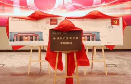 《中國共產黨誕生地主題郵局》文化戳、《中國共產黨誕生地主題郵局》紀念封等相關紅色紀念郵品和文創產品也同步發布。