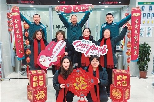 喜氣洋洋辭舊歲,虎虎生威迎新年。新年伊始,中國郵政廣大員工意氣風(fēng)發(fā)、豪情滿懷,全力開展業(yè)務(wù)旺季開門紅活動,大步邁進(jìn)推動企業(yè)高質(zhì)量發(fā)展的新征程。在推進(jìn)代理金融業(yè)務(wù)發(fā)展中,重慶市萬州片區(qū)郵政分公司定下了一個“小目標(biāo)”:春節(jié)前,全區(qū)郵政儲蓄余額規(guī)模要突破200億元。作為萬州郵政代理金融的標(biāo)桿網(wǎng)點,電報路郵政所員工一展“壬寅亮劍千帆競,金虎添億開門紅”的對聯(lián),積極營造營銷氛圍,決心在網(wǎng)點儲蓄余額破億元的基礎(chǔ)上,再創(chuàng)新業(yè)績。