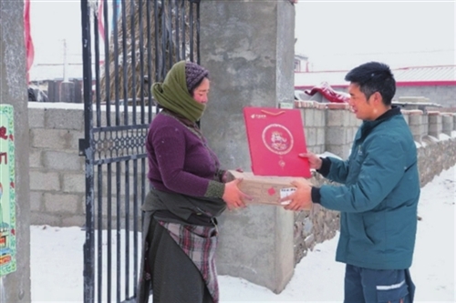 接過哈弄奪機(jī)送上的郵件和郵政新春福袋,楊措奶奶操著一口不熟練的漢語笑著對記者說:“這是孫女在網(wǎng)上買的年貨,這些天都是奪機(jī)在給我們送年貨,真的辛苦他呀!”