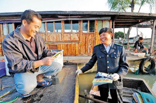 每次去投遞,唐真亞總會記錄下漁民們需要的生活用品,并買來給他們送到家門口。除了信件、報刊等,他船上往往還捎著給漁民們帶的東西:日用品、浮球、煤氣、米面……十分豐富。時間久了,漁民們就把存取錢、交話費的事也交給了他。唐真亞既當郵遞員,又當采購員、送貨員。為了抓緊時間投遞,給漁民朋友送東西,每次出門,他會給自己帶上些烙餅等食物。他的午飯和晚飯,經??窟@些在船上解決?!皫椭鷦e人讓我感覺心中很滿”。唐真亞說。