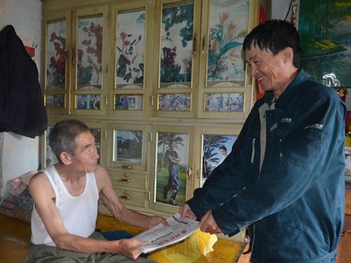 現(xiàn)在,兩江鎮(zhèn)的年輕人多外出打工,好多村屯留守的都是60歲以上的老人,耕地撂荒情況比較嚴(yán)重。2012年,為了響應(yīng)國家號召,永紅村村主任鄭吉春成立了合作社,全村33多公頃的耕地都由他承包耕種,單肥料款這一項就需要先期投入10多萬元。鄭吉春在資金周轉(zhuǎn)上有很大困難,合作社又剛剛成立,借款成了難題,他在王會明投遞時,說起了自己的焦心事。王會明熟悉兩江鎮(zhèn)的每一塊土地,他知道只要方法得當(dāng),種子、肥料選的對,永紅村這片地收成肯定錯不了,他幫鄭吉春找到鎮(zhèn)里賣農(nóng)機(jī)的劉福軍,希望從他那里借10萬元錢,劉福軍說:“這錢別人借沒有,王會明借什么時候都有,因為王會明這三個字就是保證,是信譽(yù)!我信他!”借來了錢,王會明又幫著鄭吉春買種子、化肥,經(jīng)常到地里觀察莊稼的長勢,和鄭吉春研究改良耕種方法。功夫不負(fù)有心人,在王會明的幫助下,鄭吉春的地獲得了大豐收,畝產(chǎn)1100公斤,純收入25萬元。秋收時,看著鄭吉春樸實滄桑的臉上滿是幸福的笑容,王會明真切地感受到,他和鄉(xiāng)親們息息相關(guān),心心相印,是一家人。