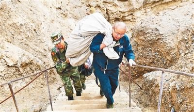 上橋,有兩條路線:一是開車走盤山“搓板路”,路遠難行還危險;二是徒步爬一條直通橋上的水泥臺階,150級,坡度近70度,被執勤部隊官兵形容為“天梯”。高海拔下,二十來歲的年輕戰士,走“天梯”都會頭暈目眩,而1976年生人的葛軍,為節省時間,每次都選擇扛著郵包往上爬。