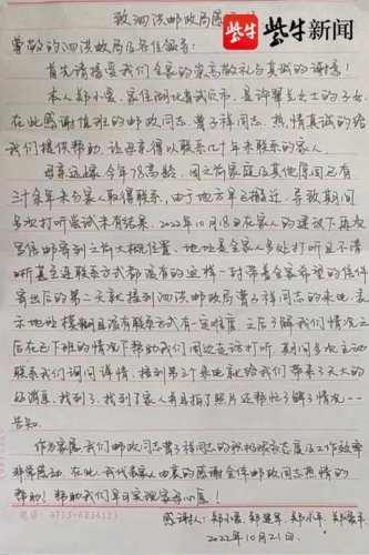 提及信中的內(nèi)容,鄭小愛說:“幾十年沒和舅舅見過面,很多話想說卻又不知道從哪兒說起,我在信中告訴舅舅,母親和我們姐弟四人現(xiàn)在過得都很好,信中還問了他的生活怎么樣,家里的孩子工作學(xué)習(xí)如何,最后留了我和弟弟的電話號碼,希望他看到信以后能跟我們聯(lián)系。”