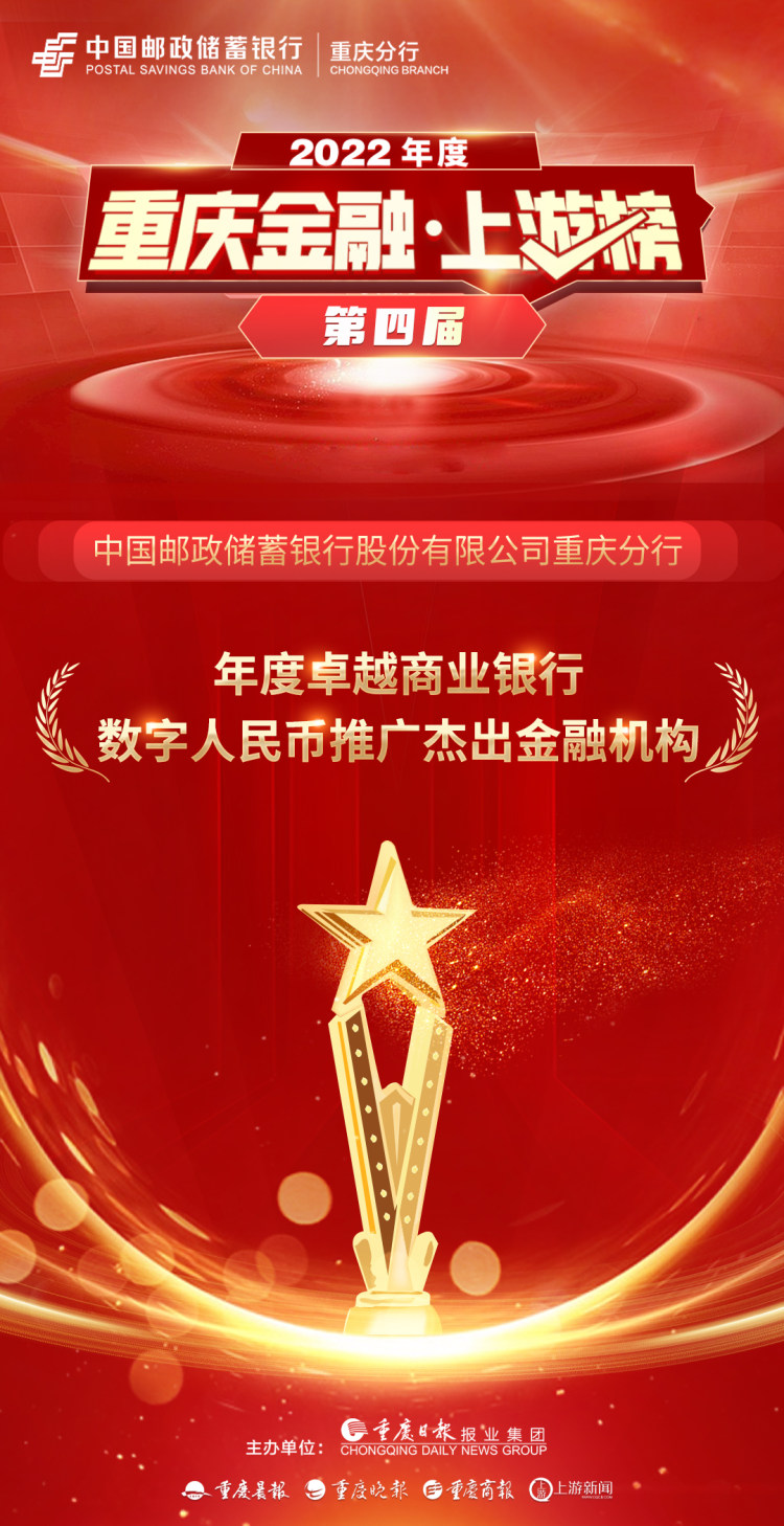 備受業(yè)界關(guān)注的2022年“重慶金融·上游榜”評(píng)選結(jié)果在今天正式揭曉。中國郵政儲(chǔ)蓄銀行(以下簡稱“郵儲(chǔ)銀行”)重慶分行憑借年度市場表現(xiàn)與行業(yè)影響力,榮膺“年度卓越商業(yè)銀行”綜合大獎(jiǎng)。同時(shí),該行扎實(shí)穩(wěn)妥推進(jìn)數(shù)字人民幣試點(diǎn)工作,在場景應(yīng)用、對公及個(gè)人錢包數(shù)量等方面堅(jiān)持?jǐn)?shù)字化轉(zhuǎn)型,積極探索創(chuàng)新斬獲“數(shù)字人民幣推廣杰出金融機(jī)構(gòu)”特別獎(jiǎng)。