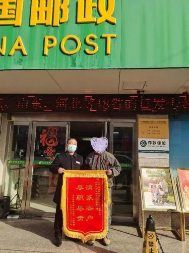 近日,駐馬店市平輿縣萬金店郵政營業所收到客戶的一面錦旗,上寫著“情系客戶 盡職盡責”,客戶激動地拉著理財經理的手說:“感謝咱們郵政,感謝中郵保險啊。”
