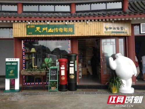 天門山傳奇主題郵局位于天子山停車場,出門就是張家界最為著名的地標景點——天門山。該主題郵局建在天門山5A級景區(qū)核心處,背靠巍峨天門山,上可仰視天門山核心景點天門洞和999級通天臺階,下可俯視蜿蜒曲折的99道彎盤山公路。主題郵局內(nèi)各類的郵政特色明信片、信函、郵品、紀念郵戳、紀念品等文化產(chǎn)品,總品種超過200多個。主題郵局除了開辦各類郵政業(yè)務外,還展銷張家界題材郵票、集郵品以及展示張家界風光的文創(chuàng)產(chǎn)品,宣傳銷售黨史學習教育系列叢書等,是名副其實的旅游文化類主題郵局。