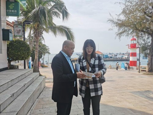 在外伶仃島上的玉帶環腰、摩崖石刻、拱橋渡水等景點,謝堅和稅務人員一道沿路向景區商鋪、行人游客宣講稅收優惠政策,成為外伶仃島上一道流動的風景線。