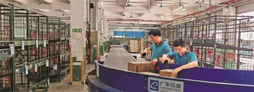 廣州市番禺區華南郵件直投中心分揀現場。□麥毓智 攝