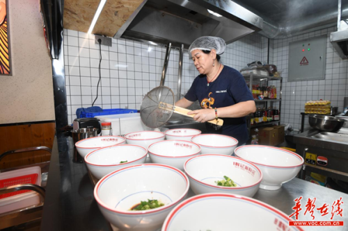 “是這里嗎?”“是這里,你看老板就知道!”在輝記面粉店,每天都有這樣的對話出現,來的,大多是慕名而來的游客。“網紅長沙”的影響助力,老板周瞰“有腔調”的餐飲特色,讓輝記三年連開四店,平均每天賣出2~3千碗粉,周瞰本人也成了長沙米粉圈內著名的“星城粉少”。