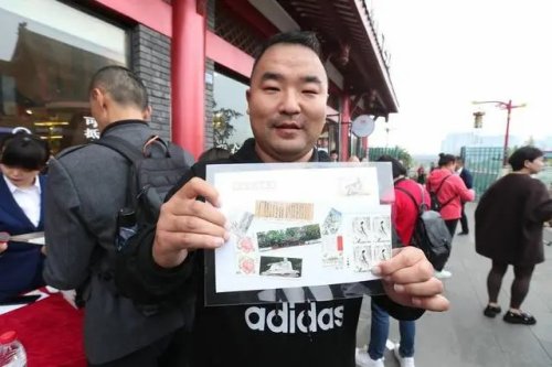11月8日一大早,拿到蘇軾郵票,36歲的李磊高興不已。此前一天,他從許昌出發,坐了17個小時的火車來到眉山。