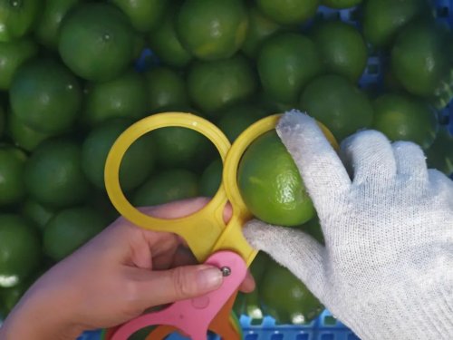 偌大的處理中心里,水果處理插上了智能化“翅膀”。一筐筐水果被送上智能分揀機器,按口徑大小從不同的格口被分揀出來后,再進行打包裝箱。