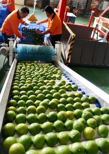 “在我們這條20多米的分揀線上,可以根據客戶要求設置果徑、重量等參數,精準篩選每一枚水果,大大提高了分揀效率。”三科農業副總經理劉翔介紹說。場地另一側,剛剛分揀好的水果被放上皮帶傳送機,郵政工作人員隨即將其裝車發往全國各地。