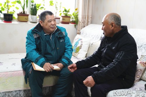 郭紅崗(左一)利用送快遞的間隙到村民家走訪調(diào)研,完善兩會建議。長城網(wǎng)·冀云客戶端記者 劉俐驗 攝