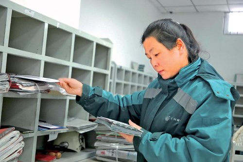 3月11日7點,田可花來到攬投部,與同事們一道,搬運、整理、分發(fā)報刊和郵件,長年累月的合作使大家很有默契。雖是初春季節(jié),可不一會兒,田可花的臉上已經(jīng)開始冒汗。