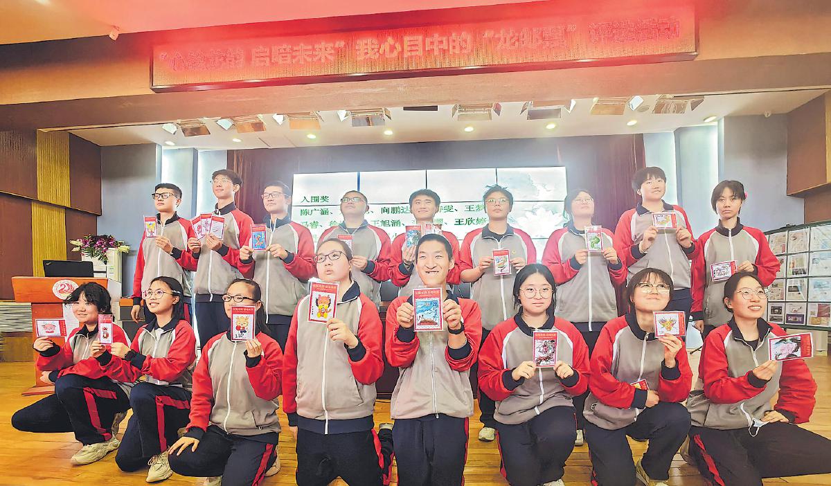 活動(dòng)現(xiàn)場,董琪宣布了入圍和獲獎(jiǎng)名單,并對(duì)孩子們設(shè)計(jì)的龍郵票作品作了點(diǎn)評(píng)。本次評(píng)選共有8名學(xué)生獲獎(jiǎng),其中優(yōu)秀獎(jiǎng)2名、設(shè)計(jì)獎(jiǎng)4名、創(chuàng)意獎(jiǎng)2名。