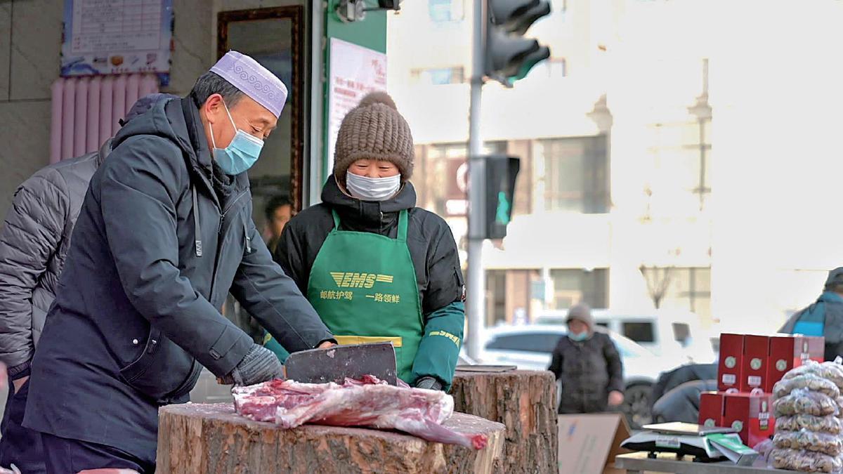 銷售旺季,綠色郵車貼著“找郵政,吃正宗鹽池灘羊”的海報穿梭在城市、鄉(xiāng)鎮(zhèn)的大街小巷。郵政攬投員隨時在羊肉店門口開啟一場速度的比拼,裝肉、打包、貼單、裝車……當(dāng)天收寄,當(dāng)天發(fā)出。店內(nèi)老板穿著郵政贈送的帶有專屬標(biāo)識的圍裙,雙手不停,剁完一只又一只,與郵政攬投員“無縫銜接”,“妥妥拿捏”灘羊的新鮮。