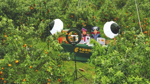 南寧郵政主播在武鳴沃柑基地直播帶貨。□中國郵政報(bào)記者 賈紅偉 攝