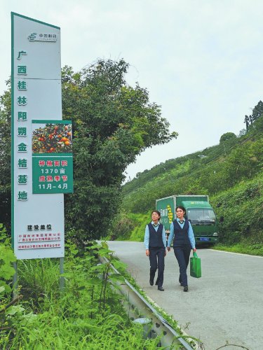 陽朔縣郵政分公司員工來到白沙鎮(zhèn)古板水果專業(yè)合作社,上門了解金桔生長情況。 □中國郵政報(bào)記者 呂文禮 攝