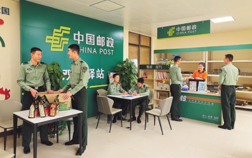 崇左市郵政分公司員工在憑祥軍郵驛站服務(wù)部隊(duì)官兵。□唐波 攝