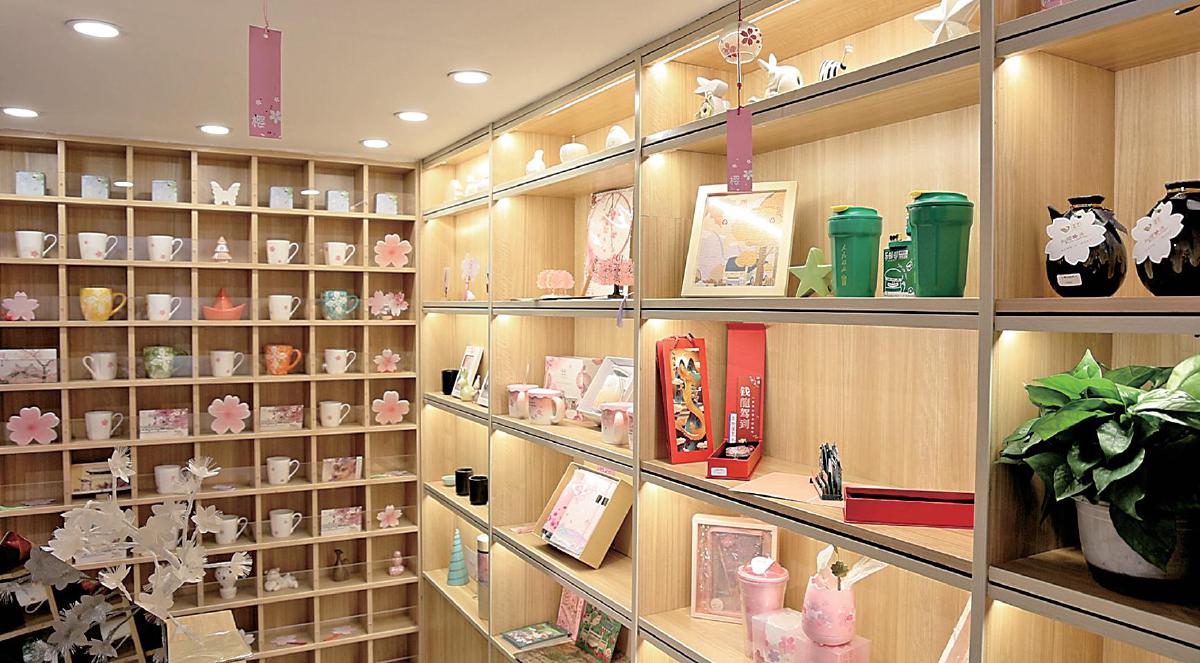 武漢大學櫻花郵局內(nèi)櫻花類文創(chuàng)產(chǎn)品琳瑯滿目。