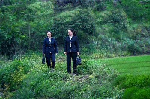 郵儲銀行重慶分行工作人員走訪農田了解農作物種植情況。郵儲銀行重慶分行供圖