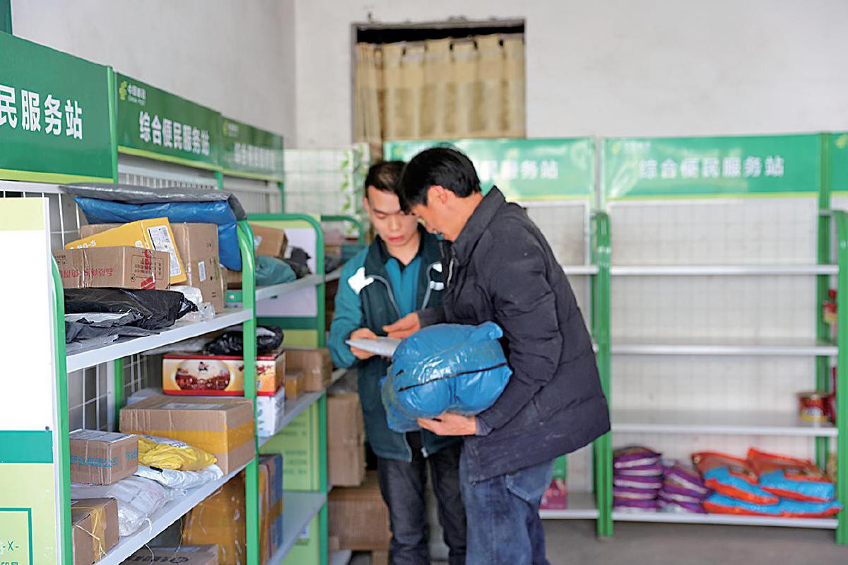 客戶在西安村郵政綜合便民服務站取件。 □李宏鑫 攝