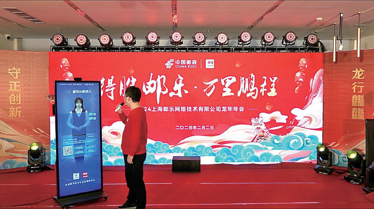 現場展示與郵樂AI數字人交流互動。(本文圖片由郵樂公司提供)