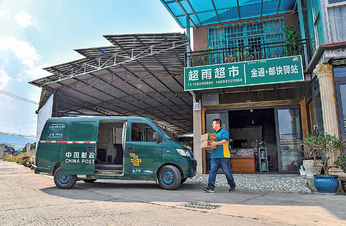 肖平非常高興,在郵政的幫助下,她的超市實現了提檔升級,成為村級綜合便民服務站。店招、打印機、貨架都是郵政提供的,超市里也增添了不少郵政惠民商品。更重要的是,超市作為村里的郵件收寄點,取郵件和寄物品的村民越來越多。來自全國各地的郵件在這里集散,也匯聚起源源不斷的客流。