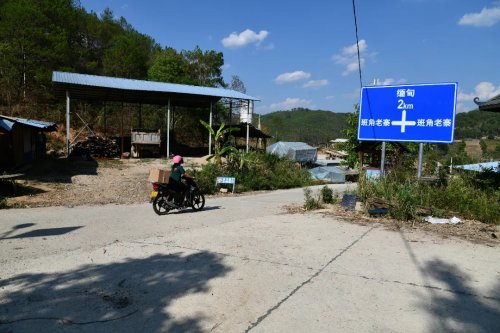 從阿里村出發(fā),采訪組沿著臨近中緬邊界的抵邊村郵路前行,路旁的邊界安全提示牌以及“黨的光輝照邊疆,邊疆人民心向黨”的紅色標(biāo)語牌都顯示出這里特殊的地理位置。采訪組一行的目的地班角老寨距中緬國境線僅1公里,與緬甸撣班和佤邦毗鄰,素有“國門第一寨”之稱。
