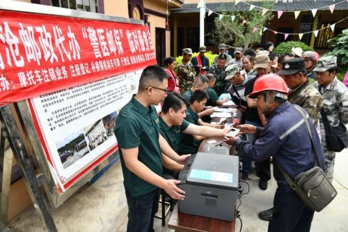 郵路通達(dá)抵邊村,便民服務(wù)也隨之深入抵邊村。2023年7月,瀾滄縣郵政分公司與當(dāng)?shù)亟还懿块T聯(lián)合啟動(dòng)“警醫(yī)郵保”項(xiàng)目,在抵邊村設(shè)置臨時(shí)服務(wù)點(diǎn),為村民們現(xiàn)場辦理摩托車滅失注銷登記、保險(xiǎn)繳納、車輛免檢、證照檢審等業(yè)務(wù),獲得了村民們的熱烈歡迎和一致好評。