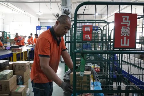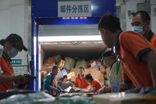 沿著連霍高速一路向西,沿途是綿延的丘陵和頑強(qiáng)生長的駱駝刺,郵車到達(dá)了玉門郵件處理中心,經(jīng)再次處理后,包裹離它的主人又近了一步。