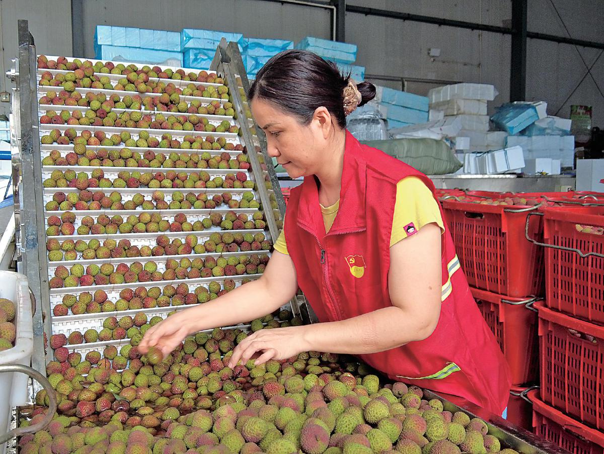 ??卩]政派駐工作人員對荔枝進行質量把關。