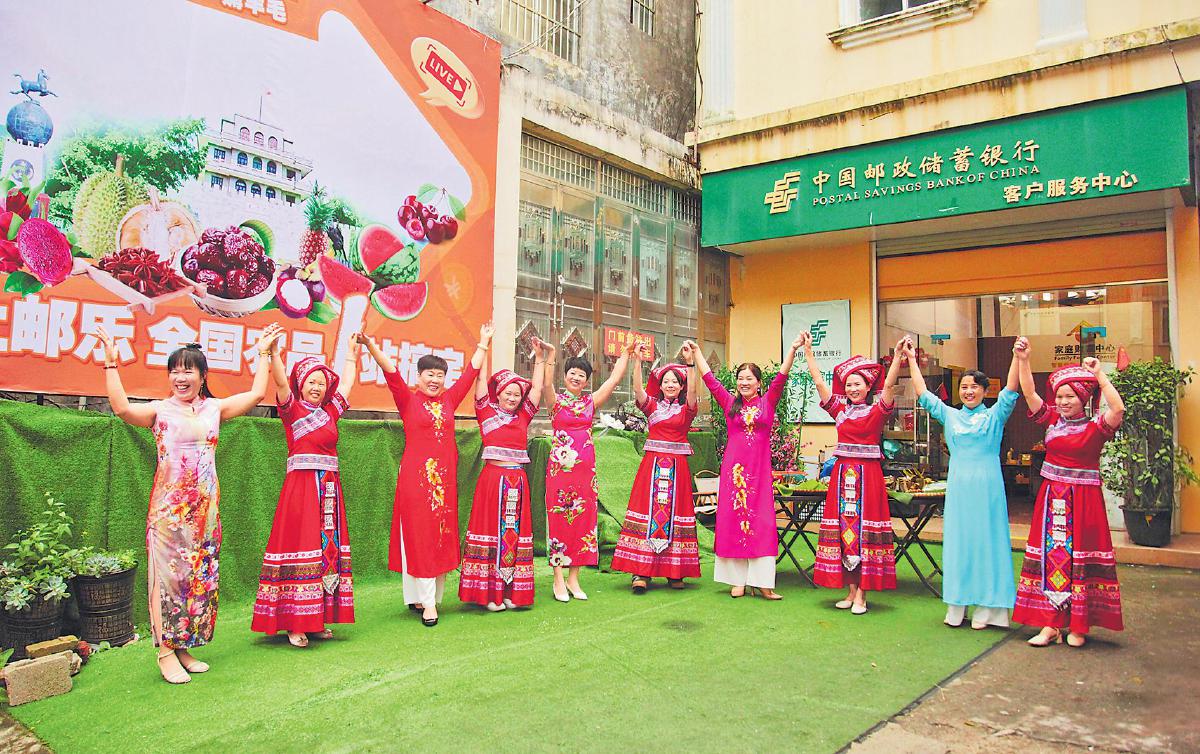 “朋友請到憑祥來,火紅的木棉為你開。這里有雄偉的友誼關(guān),這里有富饒的邊寨,這里是祖國開放的大門……”6月5日中午,采訪組沿著友誼鎮(zhèn)的邊境郵路一路前行,還沒到鎮(zhèn)上的弄懷營業(yè)所,就聽到了陣陣歡歌笑語。