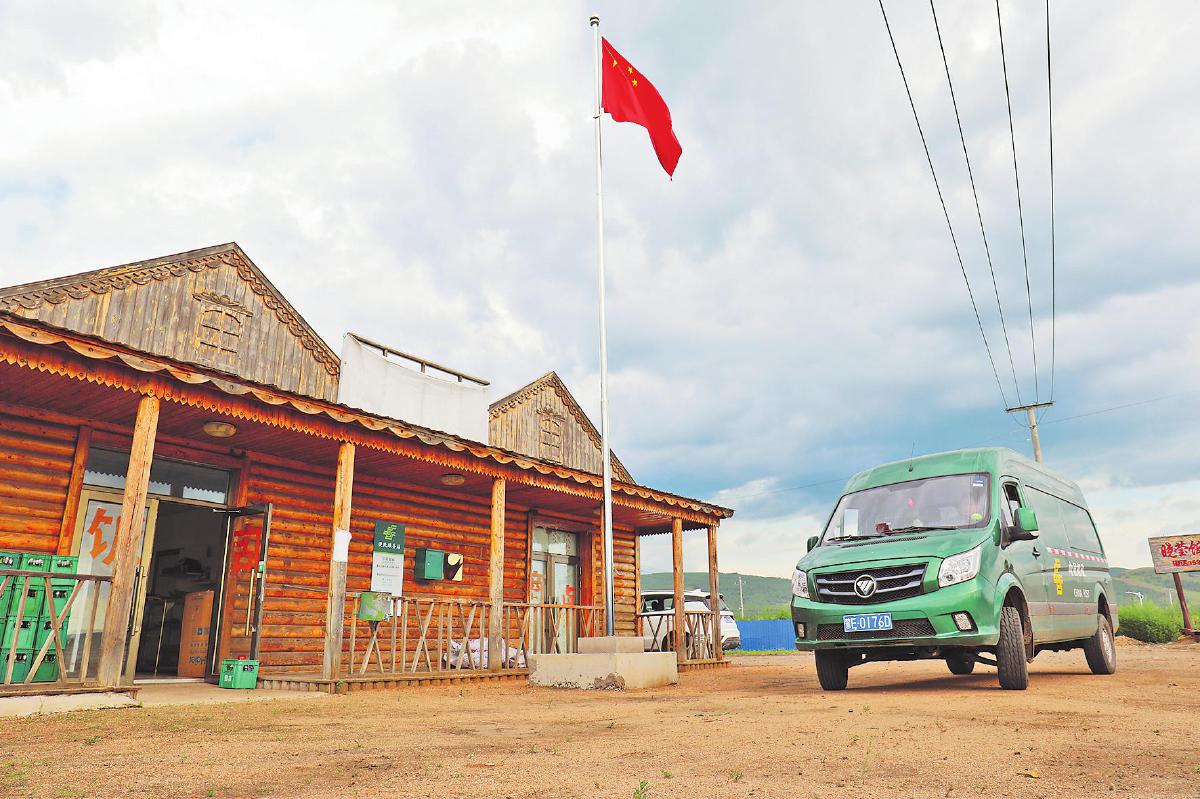 沿著額爾古納河一路前行,每隔一段距離就能看到醒目的標識牌——“請勿越界”。當一面鮮艷的國旗映入眼簾時,采訪組來到了此行的目的地——八卡村。八卡村地廣人稀、位置偏遠、交通不便,在邊境村通郵前,村民只能自行到100多公里外的額爾古納市取郵件,或由村民相互捎帶再到周邊鄉(xiāng)鎮(zhèn)去領取,費時費力,極不方便。如今,呼倫貝爾市郵政分公司在村口的曉瑩便利超市疊加了便民服務站點。看見郵車抵達,老板吳華北高興地跑出來接郵件。他笑著說:“現(xiàn)在村民來店里買東西時,就能順便取走包裹。郵政服務為老百姓帶來了很大的方便!”