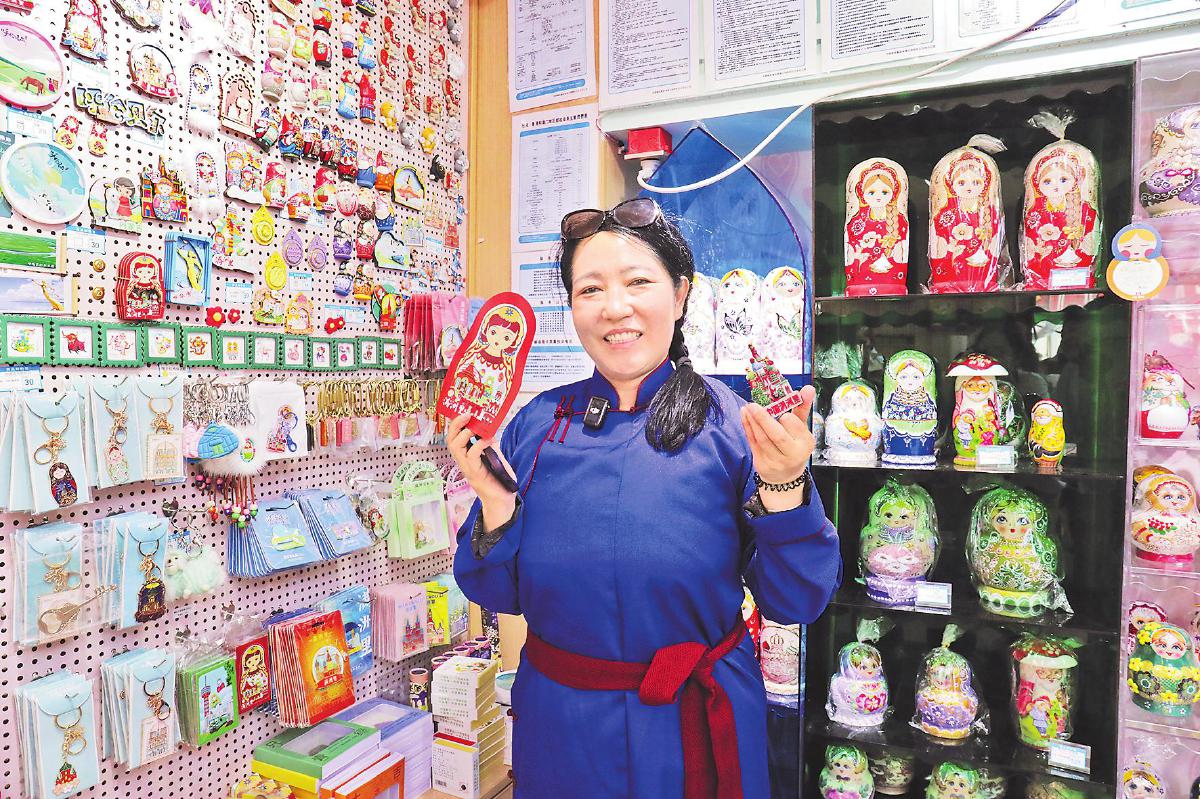 “國門邊居然還有郵局,太神奇了!快幫我拍張照!”在國門景區(qū)的入口處,占地200多平方米的滿洲里國門主題郵局吸引了不少游客。跟隨游客的腳步進入主題郵局,分布有序的各個功能區(qū)都擠滿了人。“這是我們的爆款——國門冰箱貼,琺瑯工藝,火車還可以自由活動……”記者看到,沒等郵局工作人員介紹完,幾位游客已經(jīng)快速買下好幾樣文創(chuàng)產(chǎn)品。國門主題郵局負責人項欣介紹說:“我們主題郵局里有郵品、文創(chuàng)產(chǎn)品、特色食品等500多種,以國門為主題的文創(chuàng)產(chǎn)品和鄂溫克族手工藝品都非常受游客喜愛。”