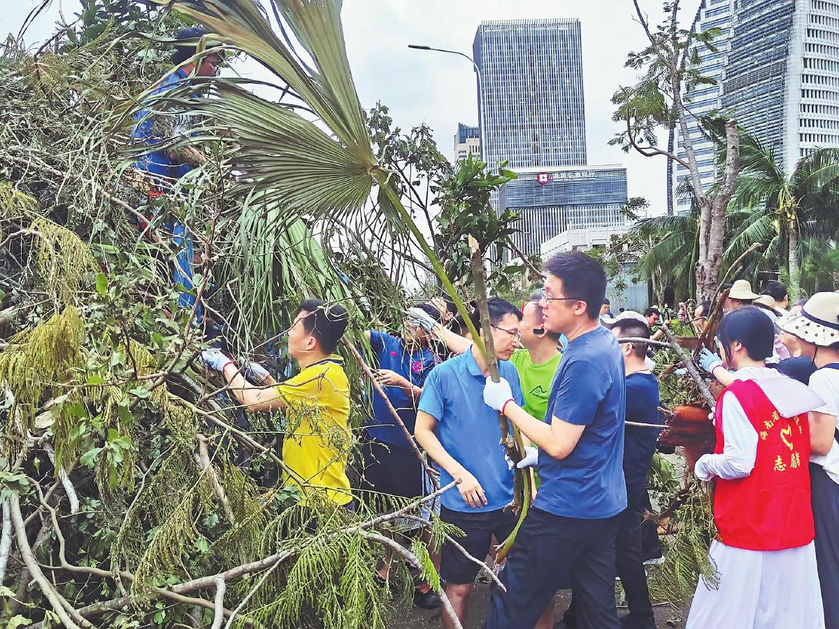 海南省分公司直屬機關黨委組織40名機關黨員參與道路障礙物清理。