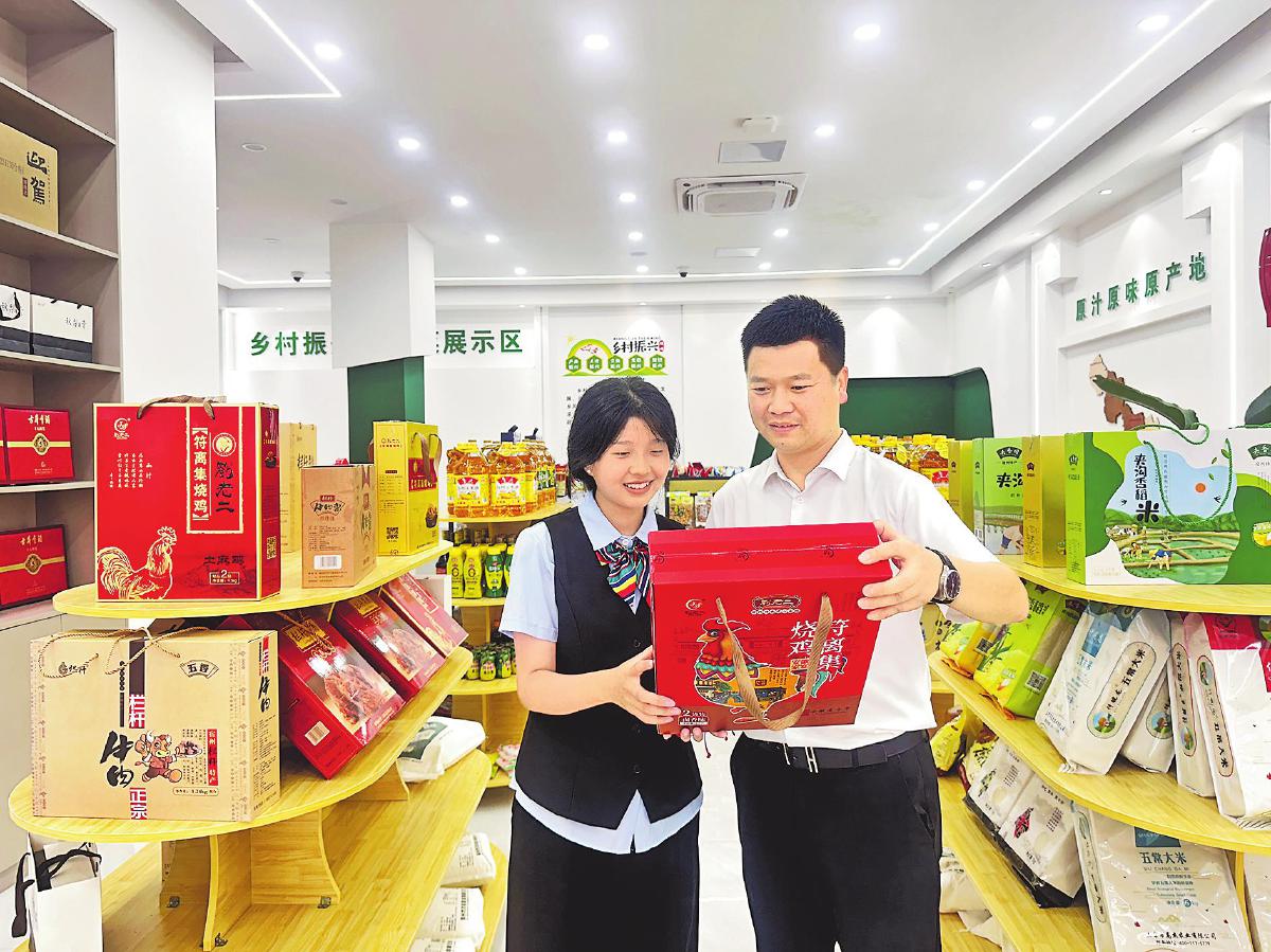 宿州郵政鄉村振興農特產品展銷館吸引市民駐足選購農產品。□毛圣茹 攝