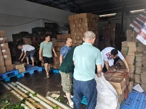 海口市郵政分公司工作人員正在搶救倉(cāng)庫(kù)物資