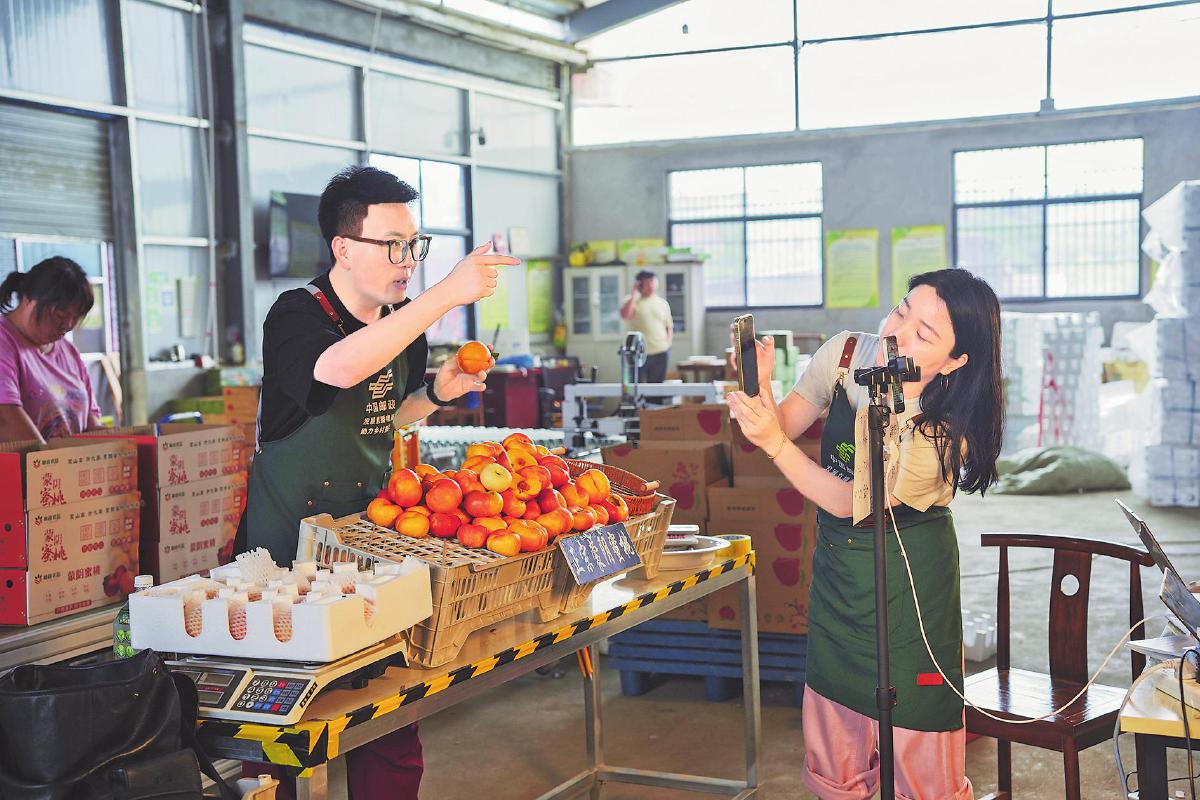 山東蒙陰被譽為“中國蜜桃之都”,其位于北緯35度的黃金水果帶,孕育出了享譽全國的蒙陰蜜桃。借助今年“919”郵政農(nóng)品節(jié),臨沂市郵政分公司充分發(fā)揮協(xié)同優(yōu)勢,將產(chǎn)自紅色沂蒙山的蒙陰蜜桃作為助力鄉(xiāng)村振興的重點項目來推動,通過助農(nóng)直播、專項營銷,讓蒙陰蜜桃走出山村、走向全國。“今天給大家推薦的是蒙陰黃金蟠桃,現(xiàn)摘現(xiàn)發(fā),主打一個新鮮……”在臨沂市分公司的網(wǎng)絡(luò)直播間,主播賣力吆喝,網(wǎng)友下單不斷。借助電商直播的熱潮,臨沂市分公司積極發(fā)展直播電商,布局線上渠道和直播帶貨資源。7月初正值蟠桃上市的季節(jié),也是蒙陰蜜桃最為熱銷的季節(jié)。臨沂市分公司抽調(diào)郵政業(yè)務(wù)部、寄遞事業(yè)部、直播團隊的人員組成溯源直播小組,對接合作社、種植戶,開展選品組品工作,做好產(chǎn)品上架、宣傳;同時,與市文旅局聯(lián)合開展直播推廣活動,宣傳視頻播放量超200萬次。經(jīng)過預(yù)熱造勢,直播當(dāng)天,短短1小時就銷售蜜桃4000余單。今年以來,臨沂郵政直播團隊累計銷售蒙陰蜜桃10萬單,銷售額達(dá)260萬元。“919”郵政農(nóng)品節(jié)期間,臨沂市分公司選擇“金皇后”黃桃為主打產(chǎn)品,搭配秋月梨,創(chuàng)新推出“桃梨滿天下”禮盒,圍繞教師節(jié)、中秋節(jié)開展線上推廣與銷售活動。清晨6點,在蒙陰蜜桃郵政倉儲配送中心,桃農(nóng)已經(jīng)開始了一天的勞作。他們將采摘的桃子進(jìn)行摘袋、挑選,郵政工作人員則忙著裝箱、打包、發(fā)貨。“與郵政合作后,我們的桃子都是根據(jù)訂單現(xiàn)采現(xiàn)裝。郵政當(dāng)天就會把桃子運走,無須存放,這可省去了我們很多麻煩!”蒙陰云蒙莊怡生態(tài)農(nóng)業(yè)專業(yè)合作社負(fù)責(zé)人侯克生高興地說。