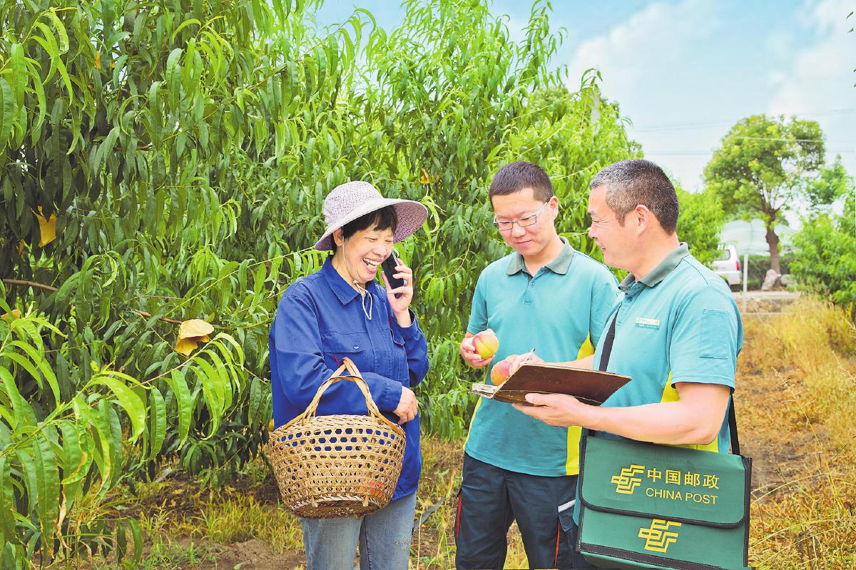 “無論是贈(zèng)送套袋還是幫忙打包水蜜桃,我們對(duì)城南郵政的服務(wù)都很滿意,一定會(huì)和郵政保持長(zhǎng)期深度合作。”在陽湖水蜜桃核心示范基地,常州市武進(jìn)區(qū)果品協(xié)會(huì)副會(huì)長(zhǎng)吳小偉這樣評(píng)價(jià)城南郵政,“我們員工的開卡和代發(fā)工資都是在郵政辦的,果農(nóng)有貸款需求,我們也是首推郵政。”在剛剛過去的水蜜桃豐收季,城南區(qū)分公司黨總支與武進(jìn)區(qū)農(nóng)業(yè)農(nóng)村局黨組、果品協(xié)會(huì)簽訂黨建共建協(xié)議,以“一業(yè)一策”為陽湖果品提升品牌競(jìng)爭(zhēng)力提供郵政服務(wù)方案,開展“郵政助農(nóng)行動(dòng)”,為陽湖水蜜桃核心示范基地及果品協(xié)會(huì)會(huì)員果園發(fā)放400萬只套袋,大大提高了本季水蜜桃品質(zhì)與完好率。同時(shí),該分公司組織下轄支局陸續(xù)開展8場(chǎng)郵政惠農(nóng)日活動(dòng),通過舉辦支局展銷會(huì)、進(jìn)社區(qū)試吃水果等,助力果品銷售,受益果農(nóng)超300戶。