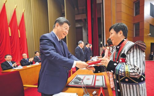 9月27日,全國民族團結進步表彰大會在北京舉行。這是習近平等為受表彰的模范個人和模范集體代表頒獎。 □新華社記者 鞠鵬 攝