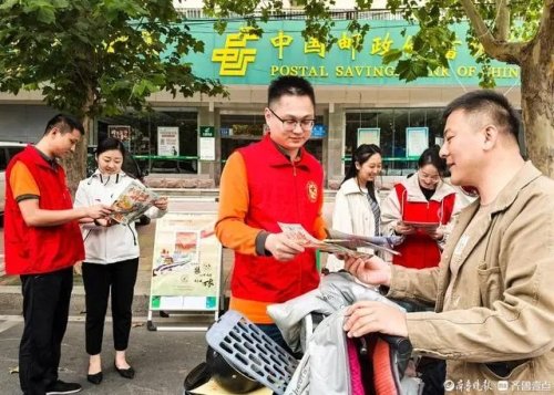 10月9日,在樂陵市郵政分公司門前,工作人員在開展寄遞安全宣傳活動(dòng)。