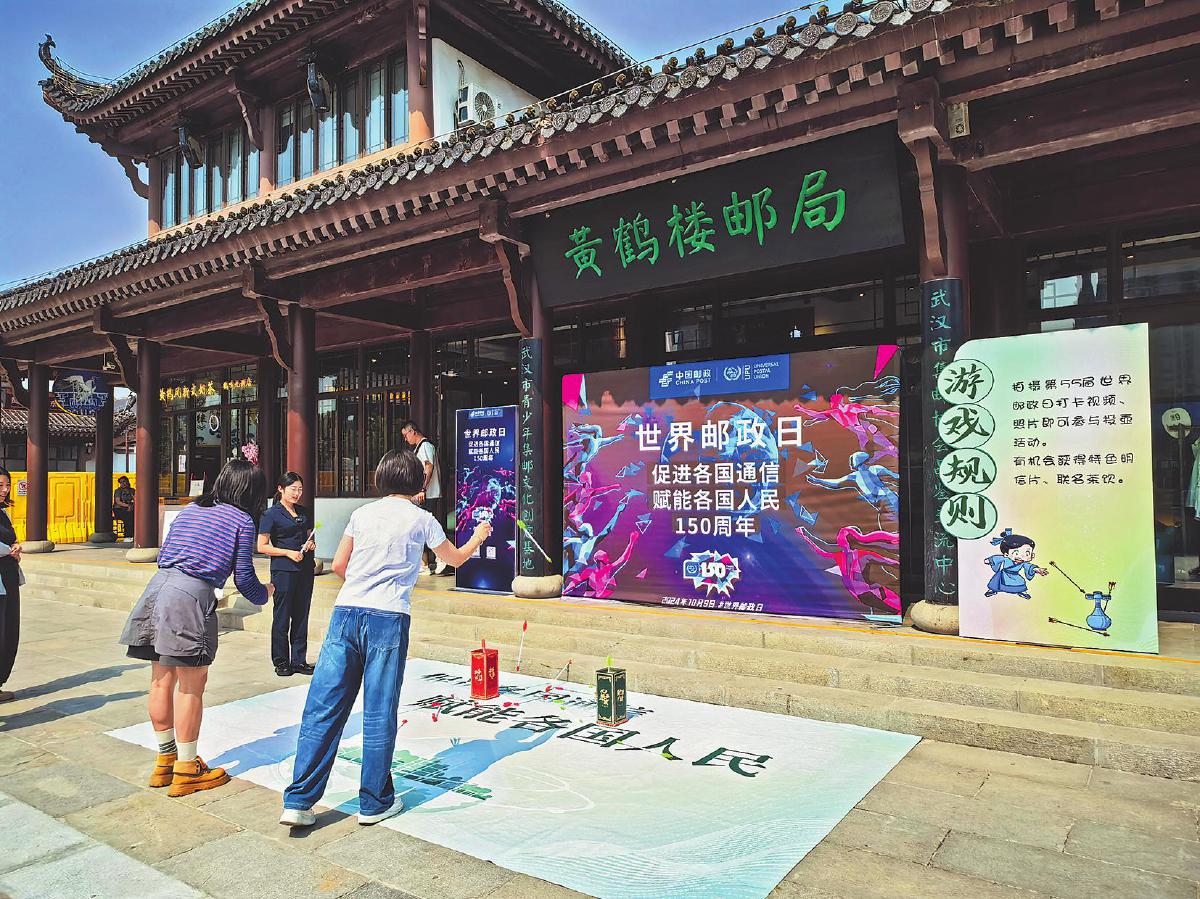 湖北省武漢市郵政分公司在黃鶴樓郵局、東湖高新政務中心以及全市各個郵政網點舉辦了形式多樣的世界郵政日主題宣傳活動。位于黃鶴樓景區東門的黃鶴樓郵局在世界郵政日當天開展了集戳打卡、趣味投壺、書畫展示等豐富多彩的活動,吸引了不少市民和游客參與?! 跣し肌£惥辍z