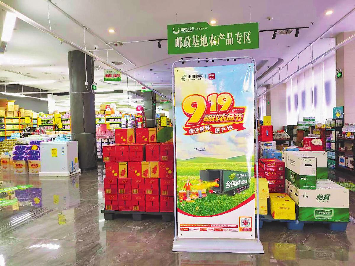 湖北郵政在當地大型商超設置郵政基地農產品專區?!鹾纹G 攝