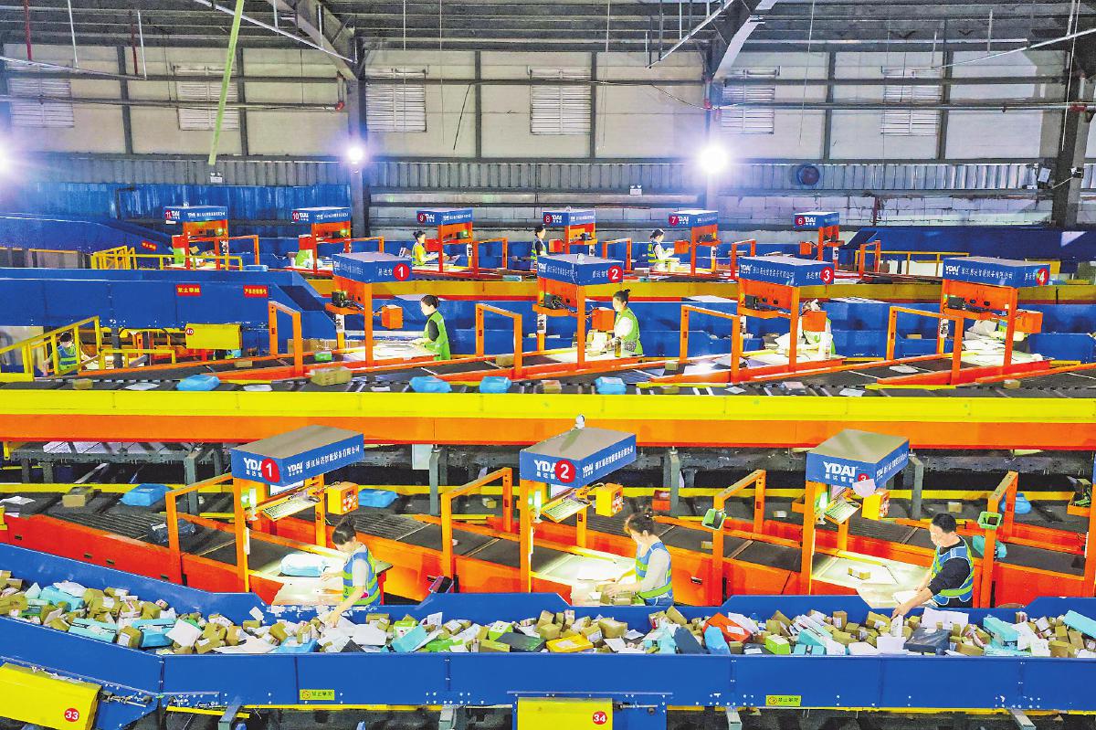 今年“雙11”期間,浙江溫州郵件高峰處理量是日常的1.32倍以上。夜幕下,溫州郵政婁橋分撥中心燈火通明,近100名員工開足馬力,利用高效自動化分揀設備處理郵件,生產現場忙碌而有序。10月22日至11月18日,婁橋分撥中心累計處理快遞郵件553.72萬件,日處理峰值達30.4萬件。