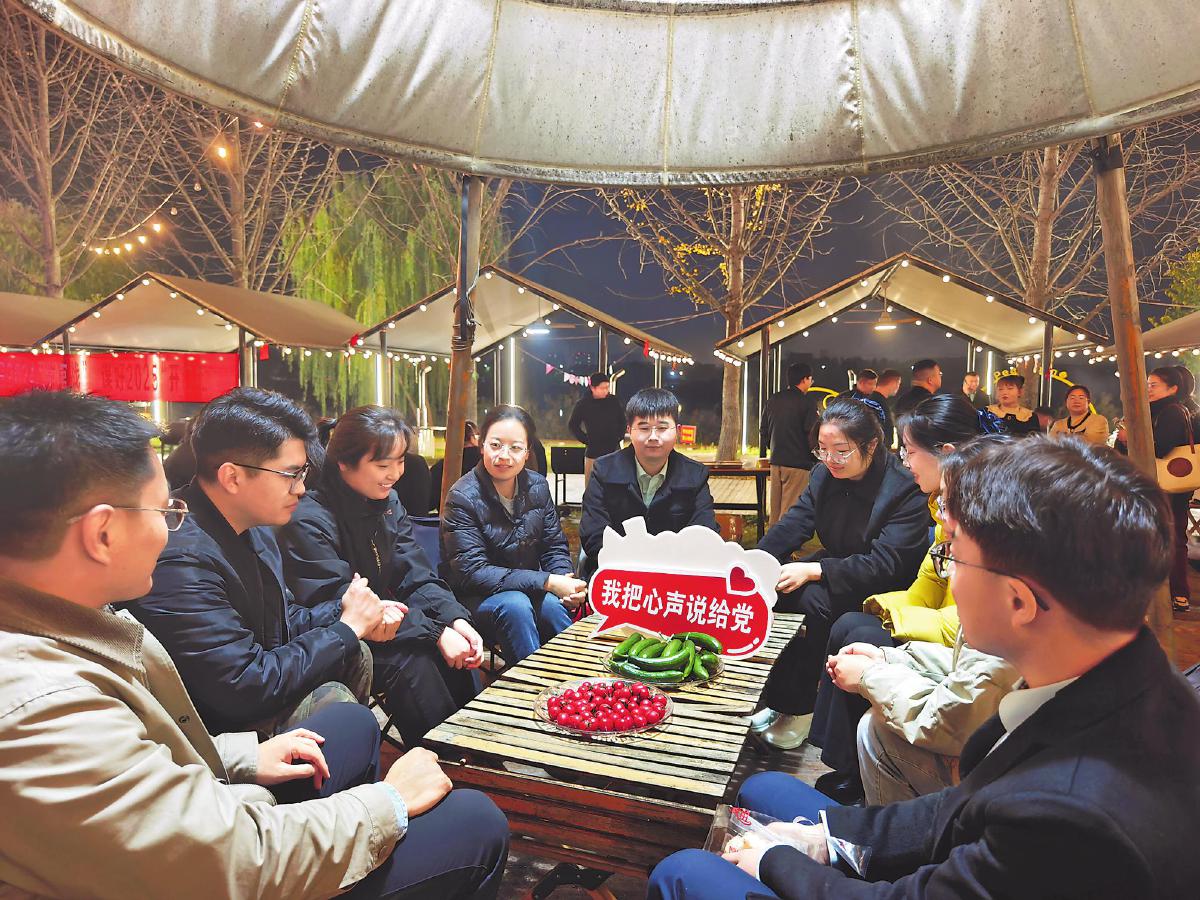 11月20日,安徽省碭山縣郵政分公司黨支部組織青年黨員、團員來到戶外,開展“我把心聲說給黨”主題夜話活動。黨支部班子成員與青年員工圍坐一起,隨著討論不斷深入,青年員工紛紛敞開心扉,說出了日常所思所想所獲。近年來,為將思想政治工作做到實處,碭山縣分公司黨支部致力于搭建黨組織與青年黨員、團員溝通聯系的橋梁,創新開展了“圍爐夜談”“篝火夜話”等特色活動。